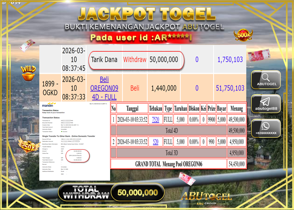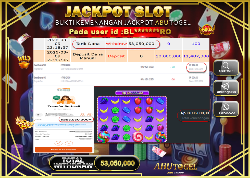 Bukti Jackpot Slot Online ABUTOGEL Selasa, 10 Maret 2026 53,050,000 - LUNAS