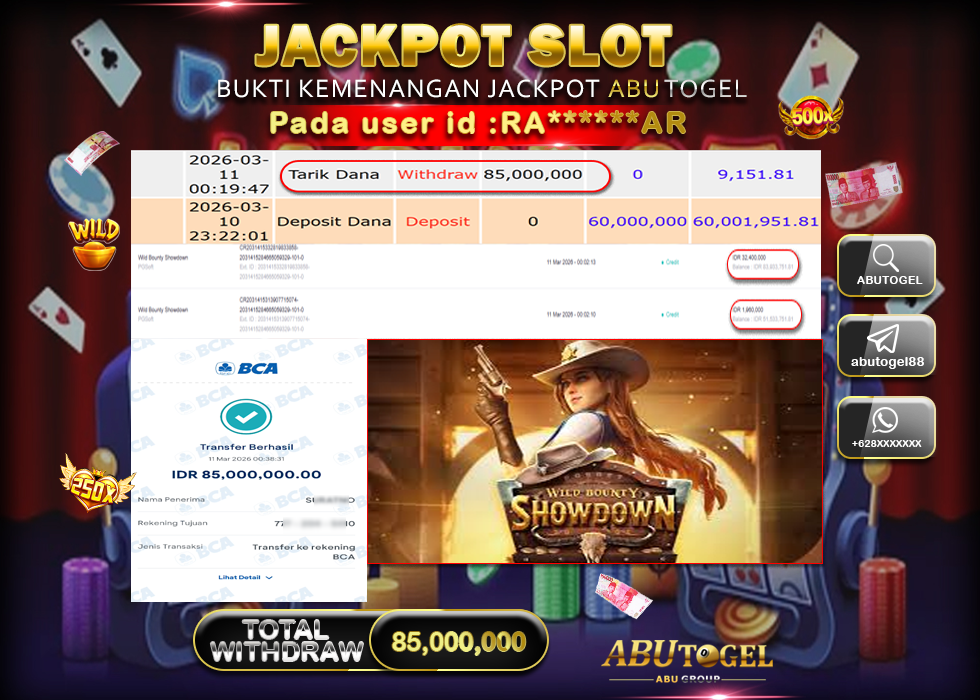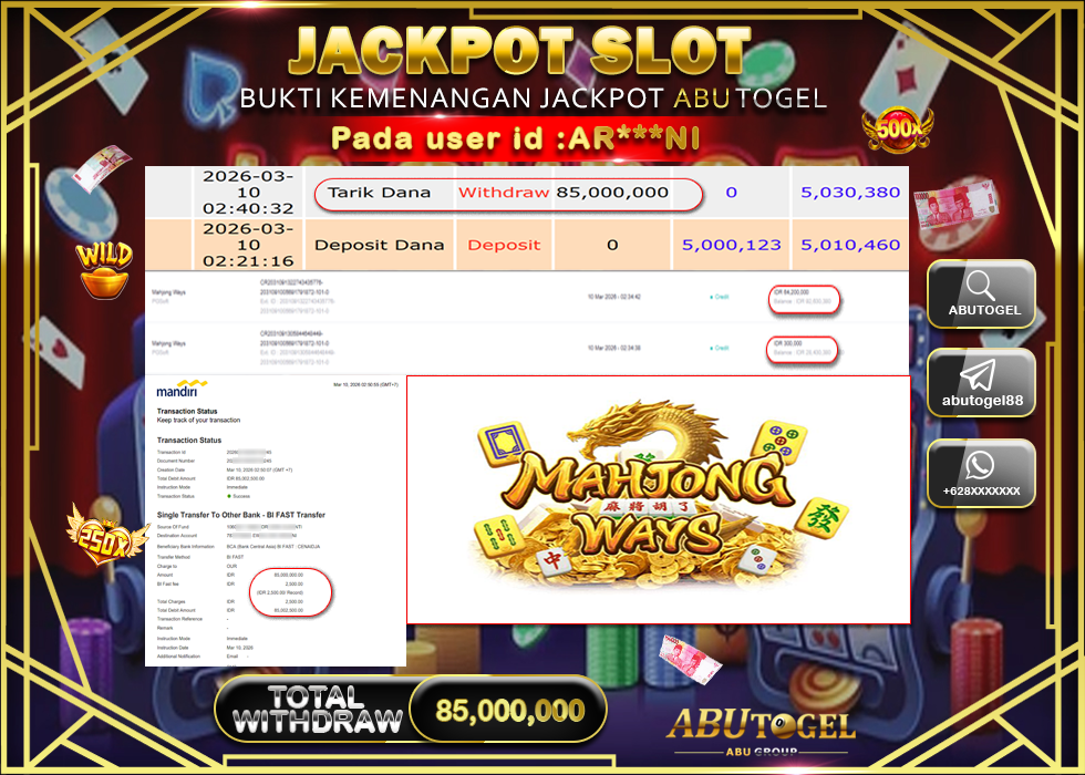 Bukti Jackpot Slot Online ABUTOGEL Selasa, 10 Maret 2026 85,000,000 - LUNAS