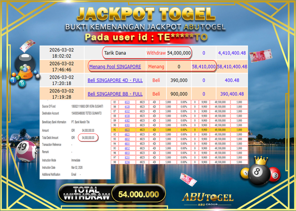 Bukti Jackpot Togel Online ABUTOGEL Senin, 02 Maret 2026 Rp 58,410,000 - LUNAS