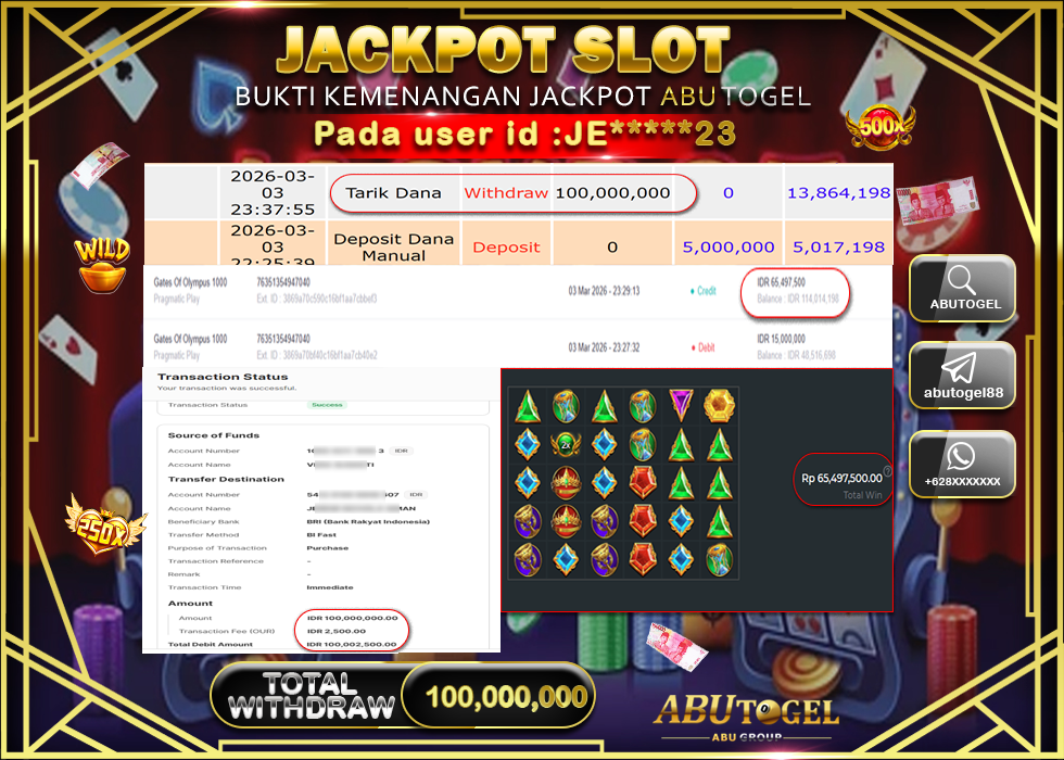 Bukti Jackpot Slot Online ABUTOGEL Jumat, 06 Maret 2026 – ABUTOGEL adalah bo online terpercaya. Berikut ini kami berikan info bukti jackpot member ABUTOGEL yang sudah kami bayar lunas dalam permainan slot online.
