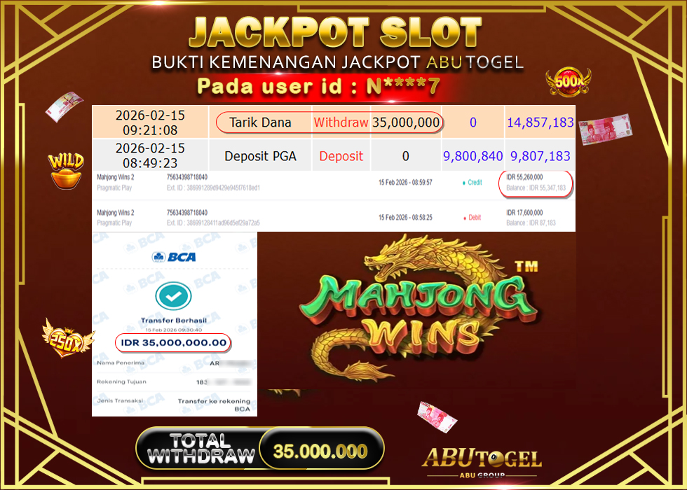 Bukti Jackpot Slot Online ABUTOGEL Minggu,15 February 2026 – ABUTOGEL adalah bo online terpercaya. Berikut ini kami berikan info bukti jackpot member ABUTOGEL yang sudah kami bayar lunas dalam permainan slot online.