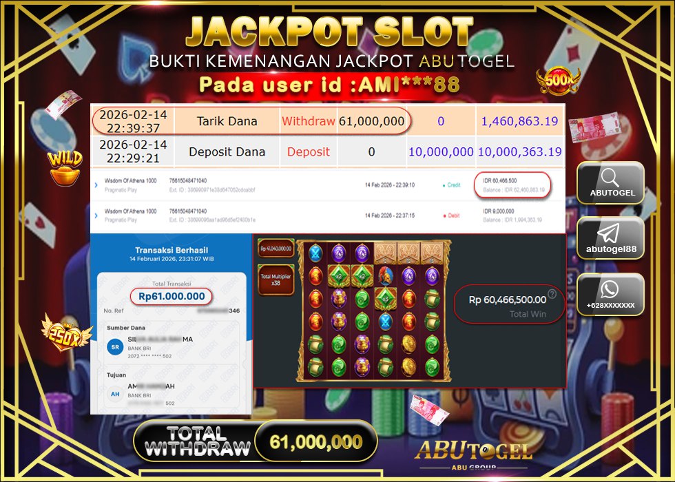 Bukti Jackpot Slot Online ABUTOGEL Sabtu, 14 February 2026 Rp 61,000,000 - LUNAS