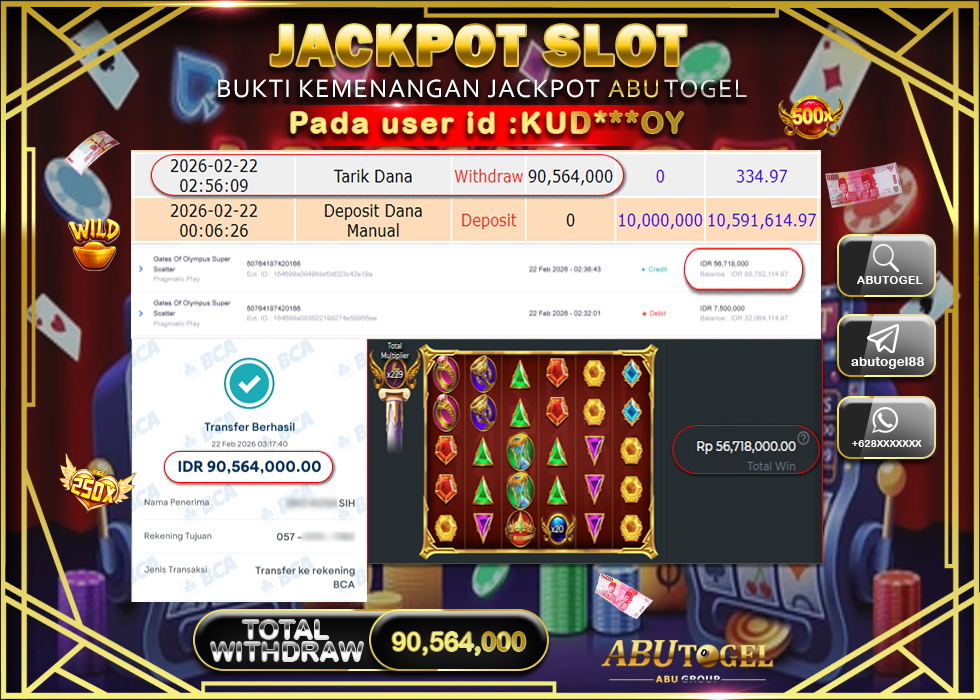 Bukti Jackpot Slot Online ABUTOGEL Minggu, 22 February 2026 – ABUTOGEL adalah bo online terpercaya. Berikut ini kami berikan info bukti jackpot member ABUTOGEL yang sudah kami bayar lunas dalam permainan slot online.