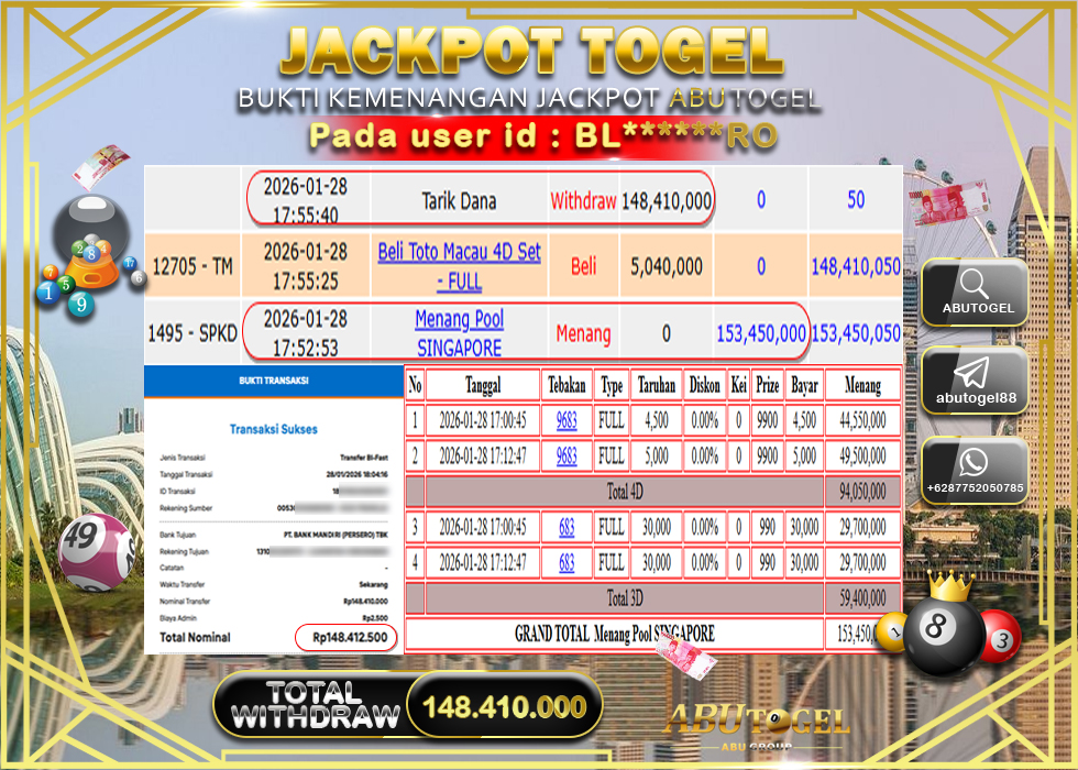 Banyak situs hanya janji, tapi di ABUTOGEL kamu bisa melihat bukti jackpot toto togel online gacor secara nyata. Mulai dari kemenangan harian, jackpot besar 2Dā3Dā4D, hingga bukti transaksi kemenangan yang benar-benar masuk ke saldo member.